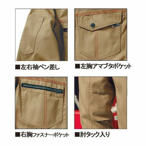 高いストレッチ性によりハイパフォーマンスを実現!!アクティブワークウェア 胸元の3本ステッチやファスナーの配置が印象的なワークウェア。胸ポケットや袖・サイドポケット等、収納力はもちろん肘にタックを入れ腕の動きもスムーズに。生地の伸縮性を活かした機動力など、機能性にも配慮。デザイン性・機能性を追求したKデザイン・シリーズ!!