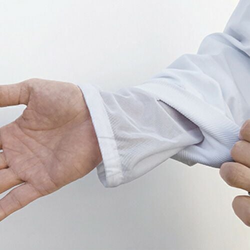 極上の着心地!コンプレッション(着圧)なのにドライ。 グリッド状の凹凸点接触冷感生地が生み出すキレのいい肌触り
