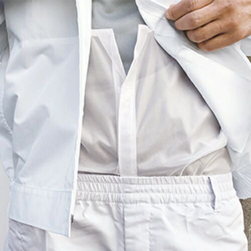 空調風神服 白衣ブルゾン(ファン無し) 003 服のみ 長袖 作業服 作業着 制服 ユニフォーム 体毛落下防止ネット付き 制電 消臭 扇風機 ファン プロペラ メンズ レディース 夏用 猛暑対策 熱中症対策 アタックベース ATACK BASE サンエス SUN-S