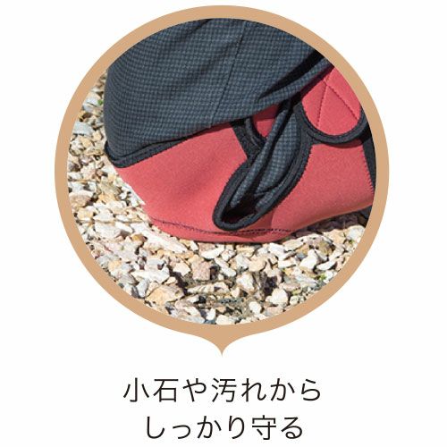 ヒザをついた時の負担を軽減するクッション性と、曲げた時の違和感を減らすためにドーナツ型のクッションを採用! 膝をついたときに痛い小石や汚れからしっかり守ります!※商品は1個入りです。両足用には2個お求めください。