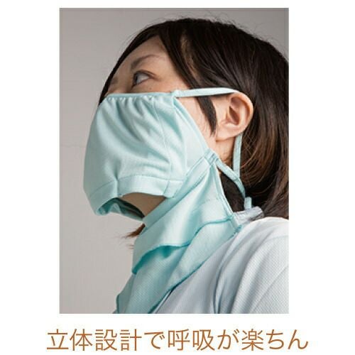 長時間作業のためのUV加工マスク。首もとまでカバーし、耳裏に負担がかからないよう設計された農家さんマスク。吸汗速乾素材でムレが気にならない! 呼吸がスムーズな立体設計。鼻・口周辺にマスクがまとわりつかない立体設計。ラクに呼吸できます。