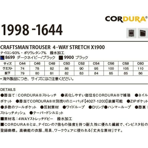 ブラックラダー BLAK LADER CRAFTSMAN TROUSER 4-WAY STRETCH X1900 防寒パンツ ワークパンツ 防寒 ズボン 保温 人気 安い 防寒着 おしゃれ 暖かい 秋冬用 最強 かっこいい 作業着 おすすめ ワーク マン メンズ カジュアル 定番 寒さ対策 防寒ウェア 屋外作業 屋内作業 あったか シンプル 1998-1644