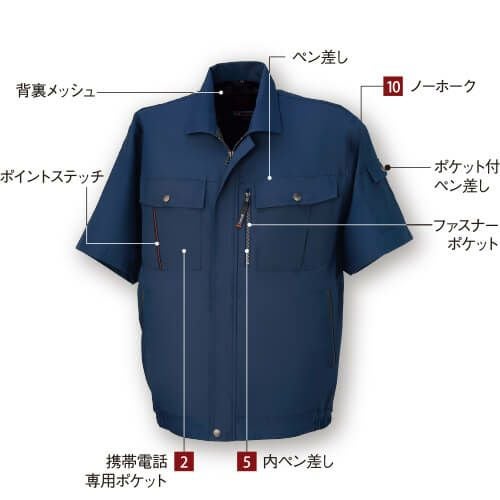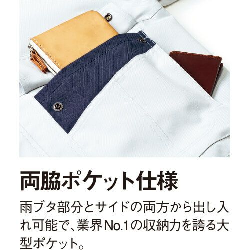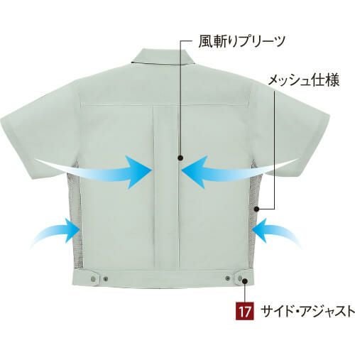 心地よく、体になじむジャストフィットシルエット 新提案夏の作業の不快指数を軽減する、快適素材と多彩な機能を随所に採用腕を上げても脇がつっぱらない「リラックスカット」生地は通気性に優れたサマー裏綿汗をかいてもすぐ乾く、夏に最適な素材です。