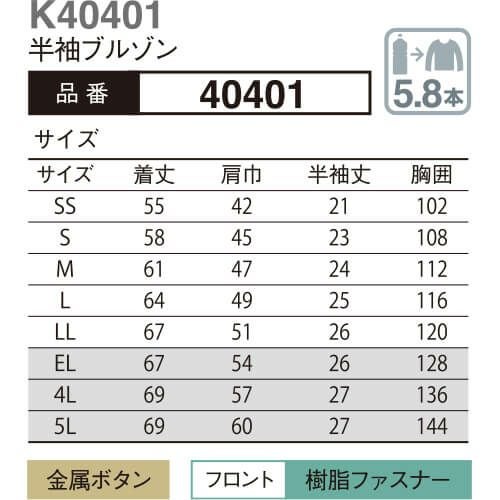 作業服 ブルゾン 大川被服 kansai uniform カンサイユニフォーム K44401 半袖ブルゾン 44401 作業着 春夏