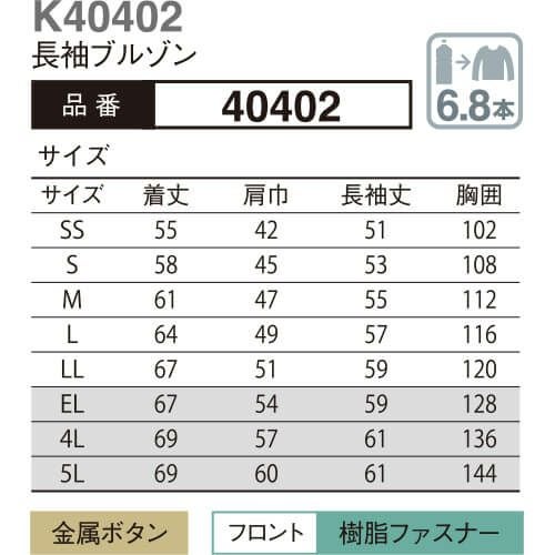 作業服 ブルゾン 大川被服 kansai uniform カンサイユニフォーム K44402 長袖ブルゾン 44402 作業着 春夏