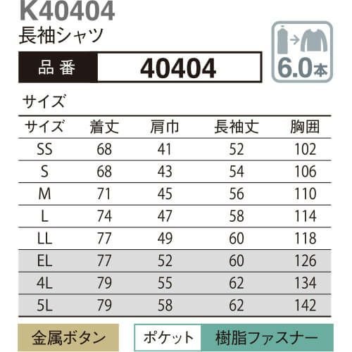 作業服 長袖シャツ 大川被服 kansai uniform カンサイユニフォーム K44404 44404 作業着 春夏