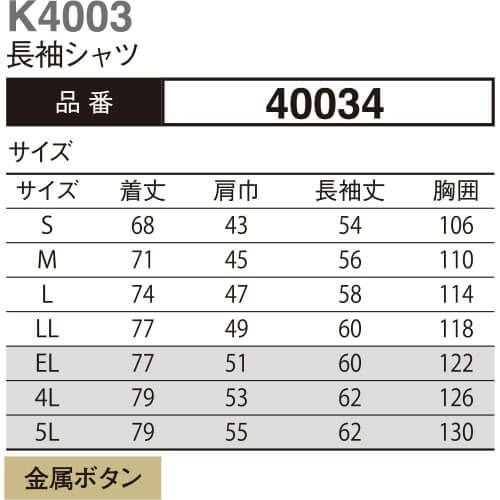 作業服 長袖シャツ 大川被服 kansai uniform カンサイユニフォーム K4002 長袖シャツ 40034 作業着 春夏作業着 作業服 長袖シャツ 春夏