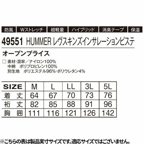 作業服 ブルゾン HUMMER ハマー ハイブリッドジャケット 47054 作業着 通年 秋冬 アウトドア スポーツ ジョギング ウォーキング トレーニング 登山 キャンプ トレッキング タウンユース ストレッチ 動きやすい