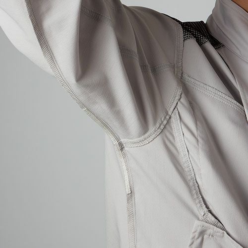肩部分とフード部分の生地の裏面にチタンを練りこんだ「日傘遮熱チタン」で赤外線・紫外線をカット遮熱効果もあるので衣服内の温度上昇を抑えます。