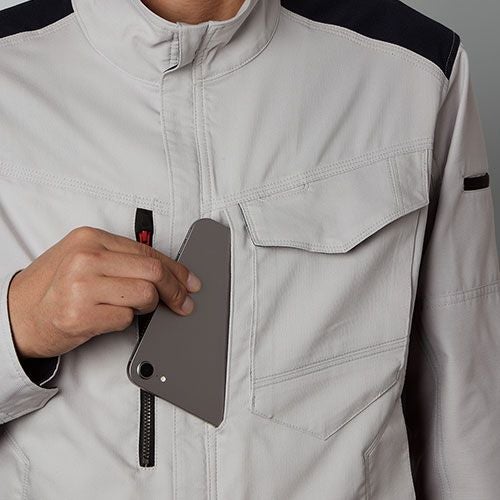 東レの植物由来合成繊維「エコディア」を使用した環境配慮型アイテム「軽い」「伸びる」「動きやすい」高機能ストレッチ素材 東レ「Lightfix」を使用 ・「軽い」「伸びる」「動きやすい」高機能ストレッチ素材 東レ「Lightfix」を使用・製品制電 JIS T-8118適合・環境負荷の少ないエコマーク認定(認定番号 24103010)、グリーン購入法適合品(作業服 基準適合)・多彩なコーディネートが可能・レディース対応も充実(ダイバーシティモデル)・多様なツールが携帯できる抜群の収納力を持ちつつ見た目はスタイリッシュ・アクティブ&シャープな印象の立ち衿仕様