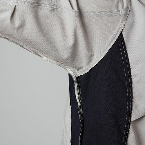TSDESIGN独自開発素材の「TCNクロスツイル」を使用ナイロンによるしなやかさを持つ高強度カーゴパンツ TCNクロスツイル&TCNクロスリップポリエステル×綿の混紡糸に、ナイロンのしなやかさと耐摩耗性をプラスしたハードな現場に対応できる高強度素材。ストレッチ性(12%)、綿による着心地の良さとポリエステルによる強度を兼ね備えている。導電繊維を混入させており、静電気をケアする。