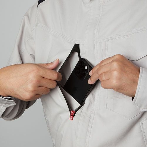 涼しく便利に快適なツナギ 格子状の織りの間に空いた穴から通気性を確保できる特殊生地を使用生地全体から清涼感を感じられるのに加え軽量であるのも特徴暑さによるストレスのみならず、人気の特許取得ヒップオープン機能『GRACE BACK』つきですので、お手洗い時のストレスからも解放されます。ファスナー付きの胸ポケットやスマホ用ポケット、金具類も表面に出ていないプロ仕様の本格夏ツナギです。