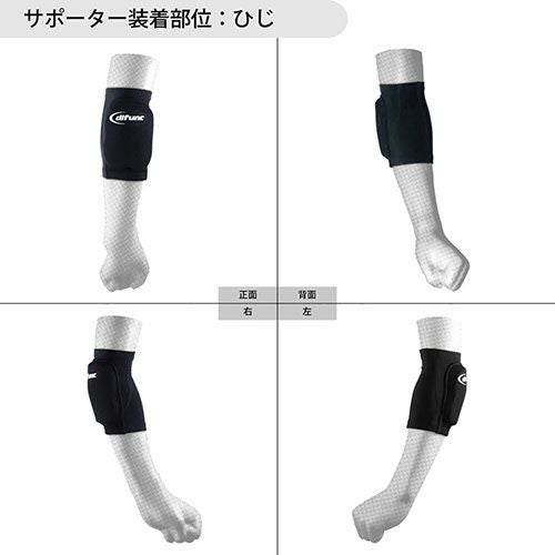 衝撃吸収に優れたパッドで安心!動きやすいショートタイプの軽量パッド付ひじサポーター 動きやすさを考慮したショートタイプ!薄くて軽い生地でフィット感も高く、3層構造の特殊パッドでプレー中もひじが気になりにくい!