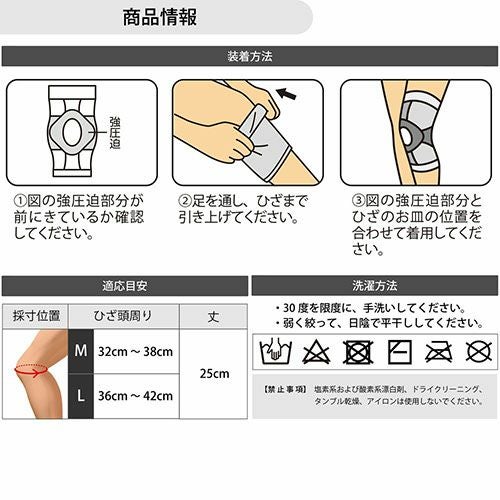 段階的な着圧で関節や筋肉をちゃんとアシスト スポーツテーピング理論で的確に動きをアシストし、アクティブに外出したい時におすすめ!ひざ頭部分は弱圧迫で曲げ伸ばしやすくなっています。