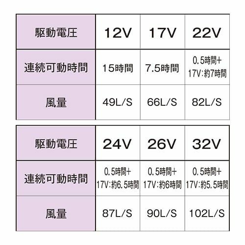 12V稼働で最長16時間連続使用可能! 最大毎秒85リットルの風量を発揮24Vを30分と16Vで約8時間の連続稼働が可能