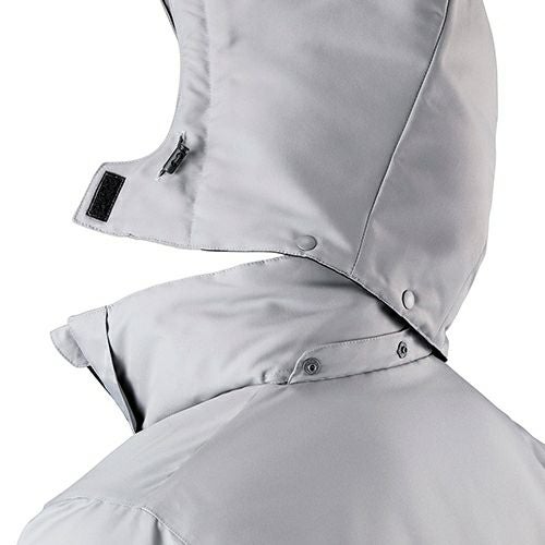 UVカット&遮熱効果の裏チタン生地 リフレクトプリントが嫣然と光るHUMMERのフルハーネス対応半袖フーディサイドファン空調風神服UVカット&遮熱の裏チタン加工生地を使用前からも後ろからも大容量の風が吹き上げる高襟&立体風気路使用■サイドファン仕様ファンの位置が通常よりも脇に配置され重機の運転時にも邪魔にならない■立体風気路首裏の3Dの構造が風の通り道を確保し立体的な風気路が首筋を包み込み風が首筋を吹き抜ける■裏チタン加工遮熱効果 MAX-11.5℃■背中の開口部からランヤードを取り出せるフルハーネス対応仕様