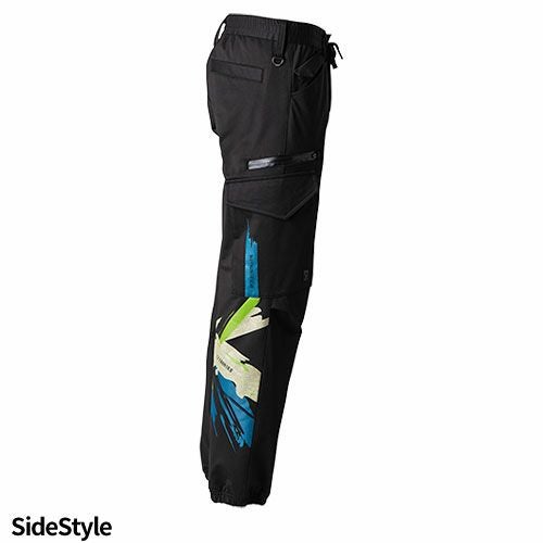 たどり着いた者こそが知り得るラグジュアリーな質感と情熱を包むマテリアル真髄を極めた最高峰フラッグシップモデル降臨 ●ニット素材でありながら考え得る限界まで布帛(織物)素材に近づけたハイスペックストレッチ素材を採用●30ゲージで高密度に編み込む事により従来のニット素材では成し得なかったハリコシ感を実現。優しい肌触りながらシャープでワイルドなスタイリングを可能とします。●素材裏面には微起毛加工を施しウォーム感漂う極上の肌触りを実現●快適性の高いニット素材の特性はそのままに適度なストレッチ性とキックバック性をプラス。布帛素材とは違うニット素材特有の着心地を実現します。●伸長率:タテ約9%・ヨコ約14%、伸長回復率(1時間後):タテ約88%・ヨコ約85%●抗ピリング性能4.5級、抗スナッグ性能4級、破裂強さ900kpaを誇る、ニット素材の中では屈強な生地強度も合わせ持ちます(ボトムスとして問題のない破裂強さの数値は400kpa)。●製品レベルでの寸法変化率は10回洗濯後でもタテ-2.3%、ヨコ0.2%を計測。従来のニット商品よりも高い寸法安定性を誇ります。●背面等、同色ながらもラグジュアリー感溢れる光沢3Dラバープリントを効果的に施しシンプルリッチな世界観を余すことなく表現●フェイクペイントラバープリントを大胆に施し圧倒的な個性とゴージャス感を発揮●ジョガーパンツは太もも周辺にややゆとりを持たせたリラックスシルエットでありながらもアイズならではの美しいシルエットを表現●ウエスト帯には平ゴムシャーリング仕様を採用し更なる履き心地の良さを実現。より様々な体形にフィットします。