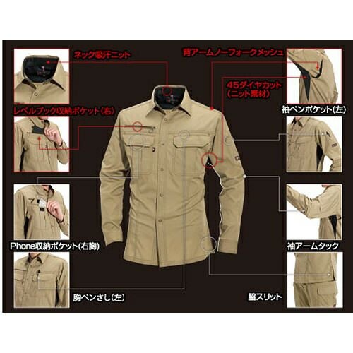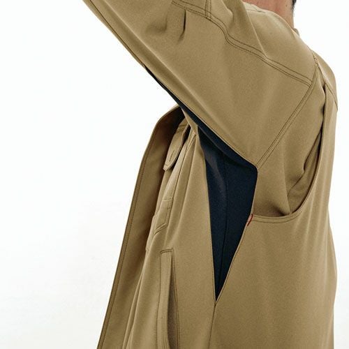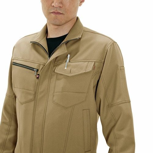 ハイブリッドコットン使用 進化形作業服 上質ハイブリッドコットンのソフトな風合いに、シンプルデザインとミリタリーテイストのカラーが醸し出す精悍な男っぽさで人気の定番シリーズ。二重ポケット仕様の胸のフラップポケットをはじめ、機能性と収納性に優れた多彩なポケットが作業現場をサポート。