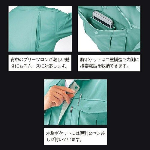 クールに着こなすスタイリッシュデザイン! 高品質な日本製裏綿ツイル素材を使用洗濯時にも型くずれしにくい形態安定性ストレッチ機能が動作をスムーズにサポート製品制電JIS T8118適合品