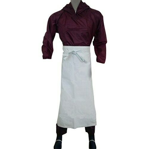 前開きヤッケとセットで着用できるパンツ 素材は汚れが付きにくいナイロン100%に撥水加工前ファスナー付きで着脱が容易