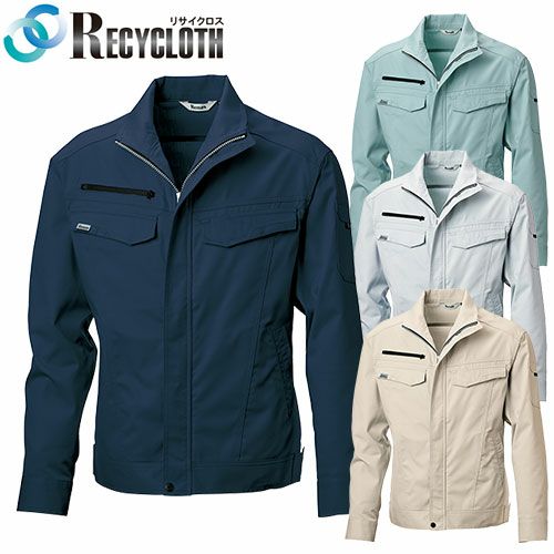 リサイクル素材全体の55%ペットボトル再生繊維を使用したスタイリッシュなエコストレッチワークウェア ・日本製生地使用・ストレッチ性のあるリサイクル素材を使用し、スタイリッシュで着やすいだけでなく、反射材をも使って安全性も高めています。