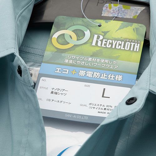 ナノテクノロジーで汚れが落ちやすく防臭効果のあるエコ素材様々なお仕事に応える快適な着心地 ・日本製静電気帯電防止素材使用(JIST8118)・防臭・防汚ナノ加工を施した環境にやさしいプレミアムエコ素材使用