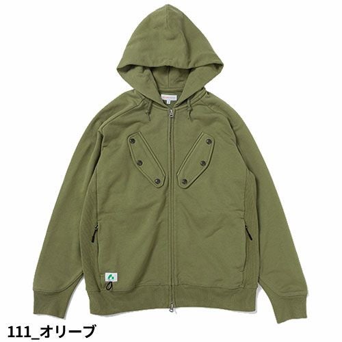 仕事へのモチベーションやプライドを与えてくれるワークウエアを提供する<SOWA>と時代の半歩先をデザインへ落とし込む<BEAMS DESIGN>のスペシャルプロダクト仕事だけにとどまらず日常使いとしても楽しめるシーンを問わない“これからのスタンダード”を担うであろう傑作揃いです。 ■綿100%の様な風合いと肌触りポリエステル高混率ながら綿の様なナチュラルな風合いと肌触りがある生地を使用しています。■ヘビーウェイトなスウェット裏毛生地386g/m2のしっかりとした手持ち感でタフさを感じられます。生地の裏側はタオルのような気持ちの良い肌触りのパイルタッチです。■ミリタリー要素をプラストリプルボタンが特徴的な胸のフラップポケットはミリタリーの「パラマリンジャケット」由来でインパクト抜群かつ使い勝手も良くワークウェアとの相性も抜群です。■ワークウェアとしての機能性カジュアルライクな見た目ながらワークウェア要素をプラスしています。・肩部分シームレス仕様で荷物を担いだ際に感じやすい縫い目の違和感を無くしています。・両脇ポケットはファスナー付きで安心感があり、大事なものを収納するのに適しています。・ポケットファスナー引手にはジッププルが付いているのでグローブをしていてもファスナーがスムーズに開閉できます。■袖口リブに機能的カットデザインミリタリージャケット、スポーツ系スェットシャツなどに見られる袖口カットの特徴としてリブの一部を縦長にしていることで手の通りがスムーズ+袖を捲り上げやすくなっています。