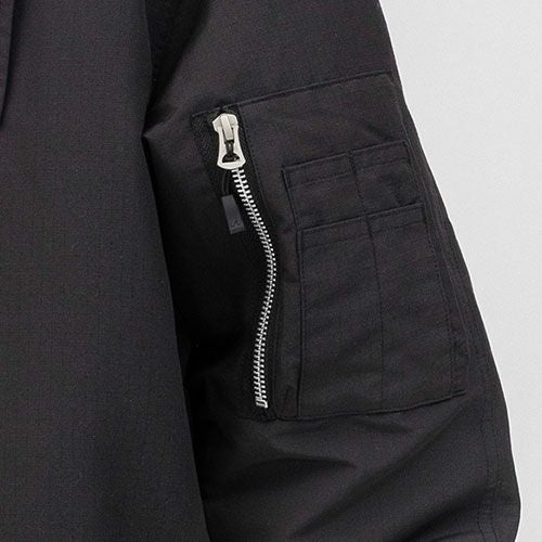 仕事へのモチベーションやプライドを与えてくれるワークウエアを提供する<SOWA>と時代の半歩先をデザインへ落とし込む<BEAMS DESIGN>のスペシャルプロダクト仕事だけにとどまらず日常使いとしても楽しめるシーンを問わない“これからのスタンダード”を担うであろう傑作揃いです。 ■高機能ポリエステルリップストップを使用ほつれや破れに強く耐久性に優れたリップストップの特性に加え、シワになりにくいイージーケア性、撥水加工による撥水性を併せ持つ機能性生地を使用しています。※撥水加工は繰り返しの着用・洗濯で機能が低下する恐れがあります。■ミリタリー由来の相乗効果フライトジャケットのN2-Bをベースに、胸に配した特徴的なフラップポケットはパラマリンジャケット由来でインパクト抜群かつ使い勝手も良くワークウェアとの相性も抜群です。■ワークウェアとしての機能性カジュアルライクな見た目ながらワークウェア要素をプラスしています。・ラグランスリーブで荷物を担いだ際に感じやすい縫い目の違和感を無くしています。・生地と中綿の選定にこだわり、ボリュームのある見た目ながら軽量感があります。・ミリタリー由来の左袖シガーポケットはペン差しとして使用できます。・両脇ポケットはファスナー付きで安心感があり、大事なものを収納するのに適しています。・フロントと両脇ファスナー引手にはジッププルが付いているのでグローブをしていてもファスナーがスムーズに開閉できます。■インパクト抜群なビッグフード最も特徴的な大きめのフードは中央のファスナーを開けると肩まで広がり、フライトジャケットの雰囲気と透湿を備えた高品質のボアの手触りが味わえます。フードのファスナーを閉じれば目元以外が全て覆われるため高い防寒性もあります。