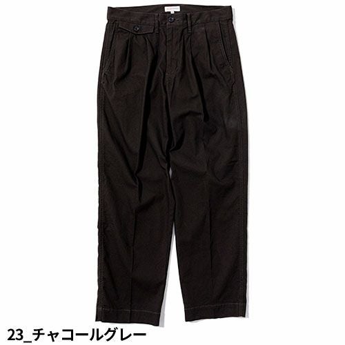 仕事へのモチベーションやプライドを与えてくれるワークウエアを提供する<SOWA>と時代の半歩先をデザインへ落とし込む<BEAMS DESIGN>のスペシャルプロダクト仕事だけにとどまらず日常使いとしても楽しめるシーンを問わない“これからのスタンダード”を担うであろう傑作揃いです。 ■ファティーグパンツ×2プリーツトラウザーズ=新定番軍人の作業用パンツとして知られるファティーグパンツをベースに英国由来のトラウザーズパンツの要素を融合させた目新しく斬新なデザイン性を持った新定番アイテムです。■綿高混率のストレッチオックス年間通して着用できる絶妙な肉厚感のストレッチオックス生地を使用しています。綿高混率にプラスしてワンウォッシュ加工を施し、ナチュラルな肌触りと適度なストレッチ性があります。■仕事着でも街着でも活躍ワークウェアをベースとした耐久性のある生地を使用しながらタウンユースとして着用しても違和感の無いすっきりとした見た目と、トレンド感のあるやや太めのワイドシルエットを採用し、作業用途以外に街着としても着用できます。■スラックス+収納性収納が少ないスラックスパンツなのでウエスト部分に定番のトラウザーズのディテールを取り入れたフラップポケットを搭載しています。