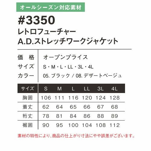 作業服 ジャンパー アイズフロンティア I'Z FRONTIER A.D.ワークジャケット #3350 作業着 通年 秋冬作業着 作業服 ジャンパー