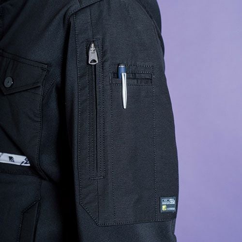 素材には作業服で最も一般的に使用されるT/Cツイルを採用。 ストリートカジュアルの定番アイテムとして認知されているデザインを取り入れておりおしゃれです。ペン挿しや胸ループなどを装備してワーキング仕様にしています。
