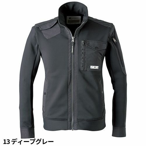 それは正に異次元。解放と堅守の融合で、ワークウェアの新たな可能性を示した大ヒット商品に、ニュ―カラー登場! ・特性の異なる2種類の素材を惜しげもなく使用し、ワークウェアの領域をさらに広げたハイブリッドモデル。・快適性の高いニット素材の特性はそのままにハイレベルなストレッチ性とキックバック性をプラス。布帛素材ではなしえないニット素材特有の絶妙な着心地を実現します。伸長率縦約31.9%、横約41.8%、伸長回復率(1時間後)縦約95.3%、横約95.8%・細番手の糸を限界まで打ち込んだハイゲージ素材は、抗ピリング性能5級、抗スナッグ性能5級、破裂強さ892kpaを誇る、ニット素材の中では屈強な生地強度も合わせ持ちます(ジャケットとして問題のない破裂強さの数値は400kpa)・防透け性能を高める高級糸フルダルを本体生地に使用。淡色系の商品カラーでも透け防止効果を高めます。・一部のパーツ素材には堅牢性の高い布帛素材を使用。各部位の強度を高めると共に高級感溢れるルックスを実現。・ライダーステイストにスポーツフィーリングを融合させた近未来感溢れるデザイン性。すべての世代に対応可能な新世紀型ワークウェアに仕上げました。・プラスチック製のファスナー、ドットボタンなどは国産YKK社製を使用。細部にまで品質にこだわっています。