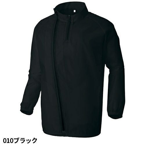 フロントファスナーをアシンメトリーに配置し、デザインにアクセント。 フロントファスナーがアシンメトリーに配置されているので、フロントに大きなプリントをすることも可能です。スタッフのユニフォーム(スタッフブルゾン)にぜひどうぞ。