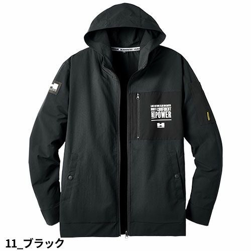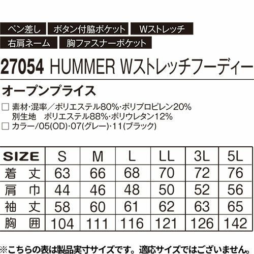 作業服 ブルゾン ハマー HUMMER Wストレッチフーディー 黒 ブラック 27054 作業着 ストレッチ ジャンパー 黒 ブラック 通年 秋冬 レヴスキンズ 吸汗速乾 保温 軽量 動きやすい 暖かい 肌触りが良い シンプル おしゃれ カッコいい ユニフォーム