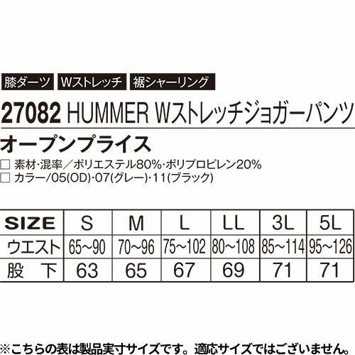 作業服 パンツ スラックス HUMMER ハマー Wストレッチジョガーパンツ 27082 作業着 通年 秋冬 レヴスキンズ 吸汗速乾 保温 軽量 動きやすい 暖かい 肌触りが良い ストレッチ シンプル おしゃれ カッコいい