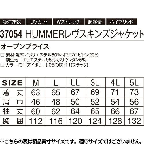 作業服 ブルゾン ハマー HUMMER レヴスキンズジャケット 37054 作業着 ストレッチ ジャンパー 黒 ブラック 通年 秋冬 レヴスキンズ 吸汗速乾 保温 軽量 動きやすい 暖かい 肌触りが良い シンプル おしゃれ カッコいい ユニフォーム UVカット 上下セット対応