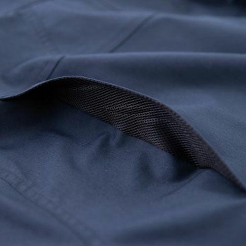 ハイウエスト+裾がズレ上がりにくい利便性を追求した作業に最適のレインパンツ ・しゃがんだ姿勢の作業も安心。腰からの浸水を防ぐハイウエストガード・最大調整幅10cm。股下の長さを3段階調節可能なニーアジャスター・脱ぎ履きを快適にする裾三角マチ仕様+調節テープ