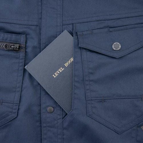SDGs#12 つくる責任つかう責任ファッション業界が抱える衣類の大量廃棄問題を解決するためにサーキュラーエコノミー(循環型経済)の実現を目指すRENUプロジェクトから生まれたモデル ■ワークシーンの定番、ポリエステルと綿の耐久ストレッチ素材■緯糸に特殊仮撚り技術による熱を加えるとバネのように伸縮性が生まれるクラボウ品質のRENUサマーストレッチツイル■新設計のEZラグランアームで腕の動きをサポート、前後上下の動きに対し抜群の動きやすさとつっぱり感を軽減■JIST8118規格適合の製品制電。衣類の静電気を外部へ出すよう生地に導電繊維を織り込みファスナー・ボタンも樹脂素材を使用■豊富な収納ポケットと反射素材付き