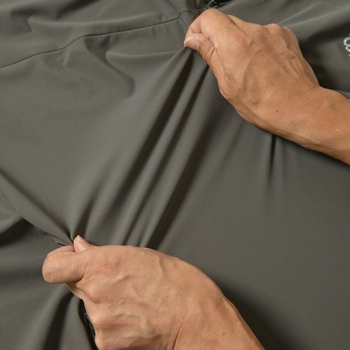 新次元の軽さ×全方向ストレッチ ワーキングウエアに最も重要な要素の一つであるストレスフリーを実現する新次元のストレッチ素材(Scrumtech-U) を採用。高弾性糸を締め上げ、高密度に編み上げることで高いストレッチ性を獲得。すぐれた保形性とおどろくほどのしなやかさ美しい表面感を持ち、丈夫で、軽く、さらに防汚・帯電防止の機能がウルトラストレスフリーなワーキング環境を実現します。