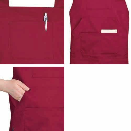 既存商品から使い勝手を重視したポケットなど細部デザインを見直し、ワーク・園芸・軽作業・サービスなど幅広いシーンに対応するマルチエプロン あらゆるシーンになじむ使い勝手を重視したベーシックTC張り感のあるしっかりした生地厚でシワや型崩れを気にせず使えるエプロンにちょうどいいT/C素材