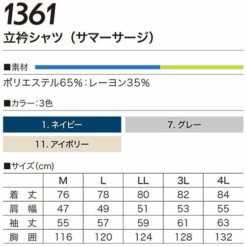 鳶服 上着 シャツ 村上被服 鳳皇 HOOH 立衿シャツ サマーサージ 1361 作業服 春夏 日本製 鳶服シリーズ