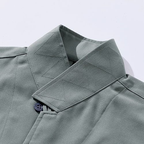 鳶職人に愛され続ける村上被服 HOOH(鳳皇)生地も縫製も日本製に拘る職人送る!Made in Japanの鳶服シリーズ! 生地も縫製も日本製。革新を続ける伝統の技。職人に愛され続けるHOOHの鳶服。日本製サージ素材使用で安心の品質。作業服のイメージを打ち破る洗練のスタイルでいなせに着こなす立衿シャツ。