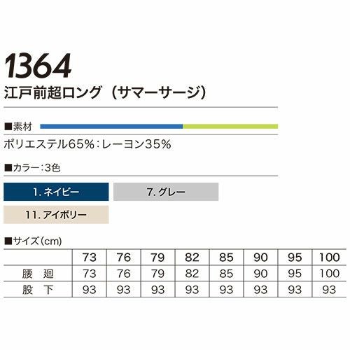鳶服 ニッカポッカ パンツ 村上被服 鳳皇 HOOH 江戸前超ロング サマーサージ 1364 作業服 春夏 日本製 鳶服シリーズ