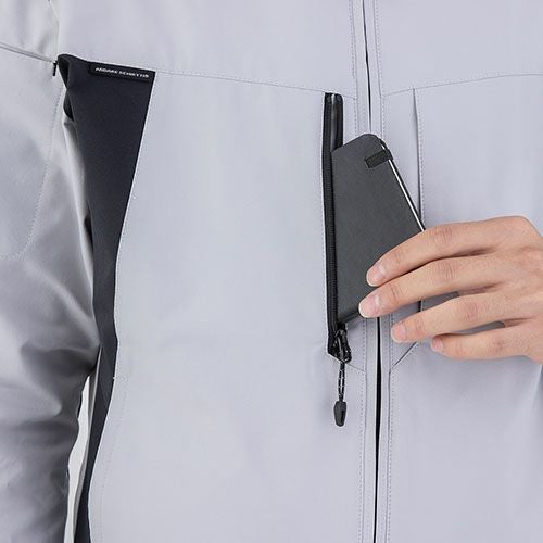 シャープな切替配色がもたらすスマートな見た目が持ち味ストレッチ素材で動きもスムーズ、抜群の収納力はまさに“着るカバン”収納も着こなしも兼ね備えたシリーズ 上から入るスマホポケットフラップを閉じた状態でもスマホを収納できるポケット付