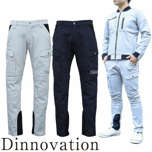・抜群の伸縮性を誇る中厚のカラーデニム素材でオールシーズン対応・ストレッチ性能抜群で、着用時のストレスを感じさせない「ストレスフリーカラーストレッチデニム」・ウエストにゴムベルトを採用し幅広いサイズ対応・スタイリッシュに着こなせ、且つ柔軟性抜群なので動きが快適に・ふとももには便利なマチ付きポケット・大型で便利なポケットを各所に配置・左カーゴポケットに「Dinnovation」ロゴプリント