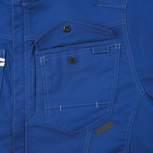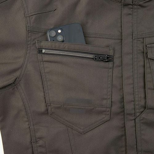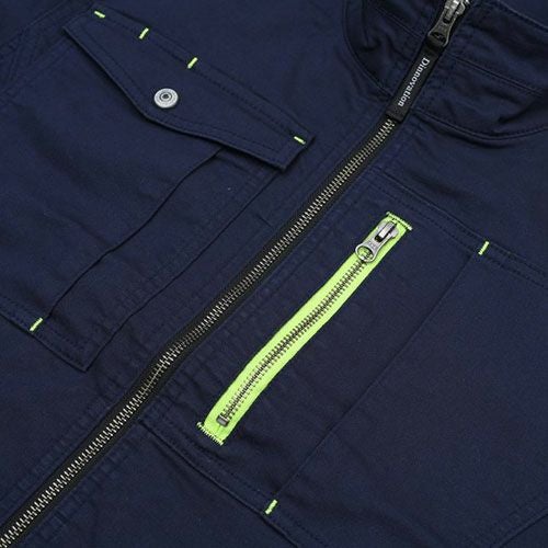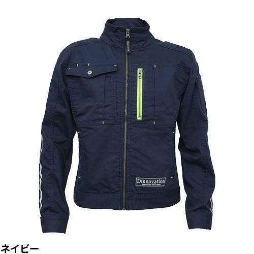 ・タテ、ヨコ方向に伸縮するストレッチ素材で着用時の動きをサポートする「2WAYテックナイロン」素材を採用。・前立て部分にリフレクト素材を採用で視認性UP。・スタイリッシュに着こなせるスリムシルエット。・胸ポケットはフルハーネス対応のファスナーポケット。・左身頃の裏側に便利な内ポケット。・左腕にペン差し用ポケット。・右後ろ肩に「Dinnovation」ロゴプリント