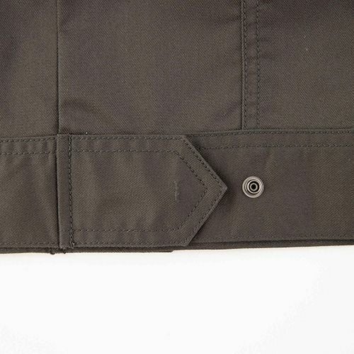 持続可能で地球に優しい手法を採用しアフリカンコットンを100%使用した「サステナブルストレッチデニム」ワイルドかつアメイジングストレッチによりストレスのない着用感を実現したワークウェア サイドベンツアジャスター腰帯を無くし裾部分にアジャスターボタンを施すことでお腹のふくらみでフロントが閉まらない場合でもボタンを外せば腹回りに余裕ができて閉めやすくなります。
