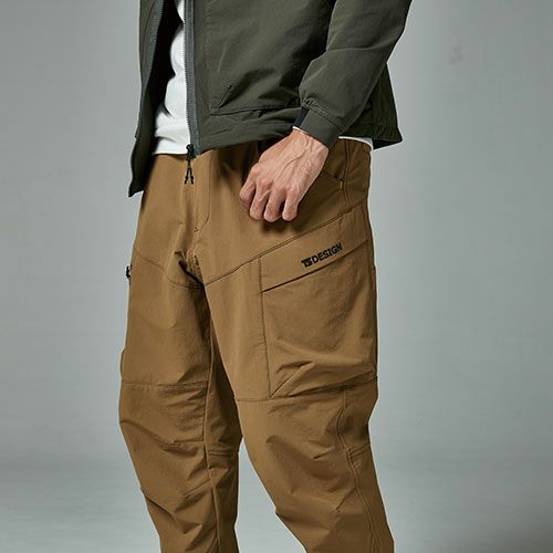 植物由来の合成繊維を使用したエコマーク対応商品 ●植物由来のCO2低減素材を採用●軽い!伸びる!動きやすい!バネのようなストレッチ素材●動きやすいストレッチパンツは他のエコアイテムとの組み合わせも自由自在