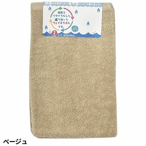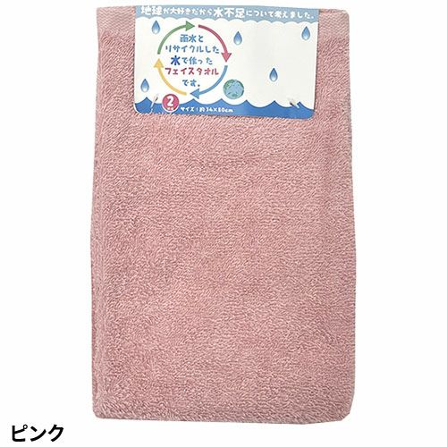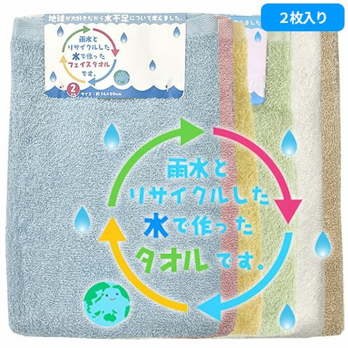 タオル フェイスタオル 2枚組 雨水とリサイクルした水で作ったタオル テラカラー FN602401、FN602402、FN602403、FN602404、FN602410、FN602428 エコ リサイクル水 キッチン トイレ 浴用 洗顔