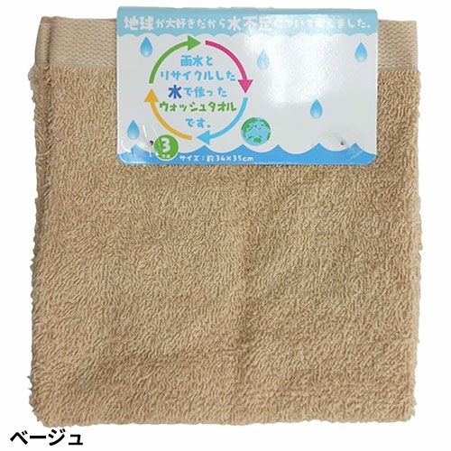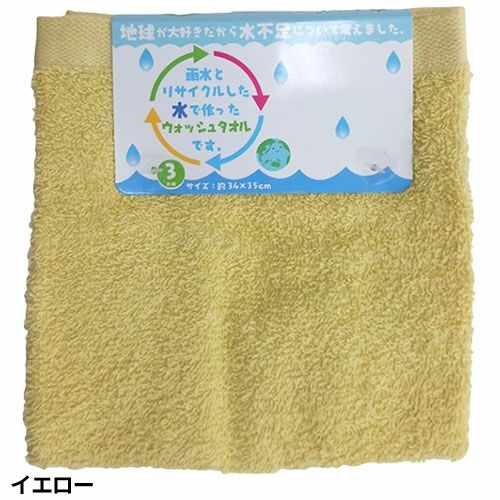 タオル ウォッシュタオル 3枚組 雨水とリサイクルした水で作ったタオル テラカラー WN602401、WN602402、WN602403、WN602404、WN602410、WN602428 コスパが良い キッチン 洗顔 掃除 普段使い 学校 保育園 こども園 幼稚園